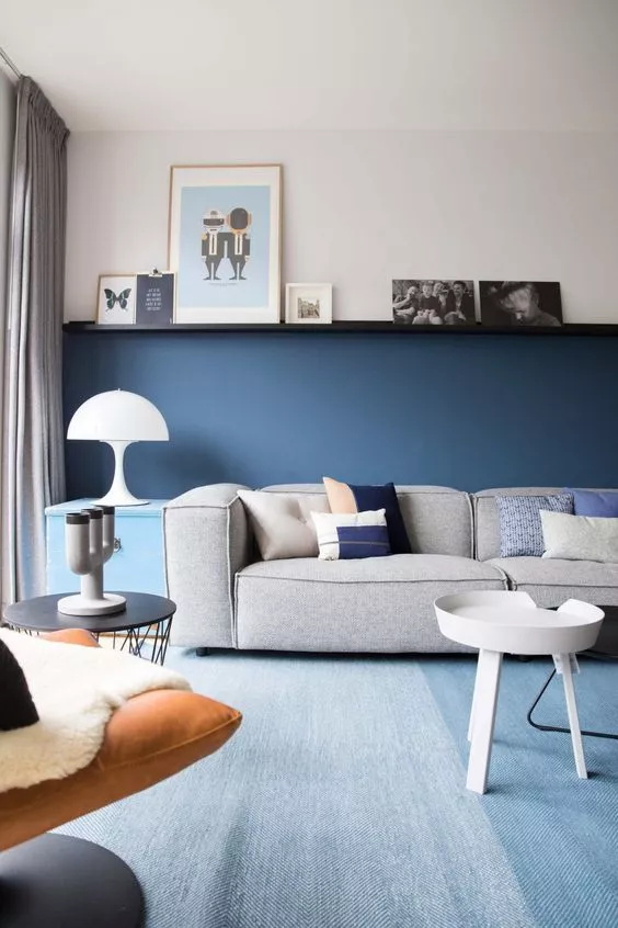 這個讓兩種顏色在墻上“平分秋色”的細節可以把深色和淺色同時帶入室內,顏色占用的比例可以根據情況而有所改變,也不一定是上下比例一致。