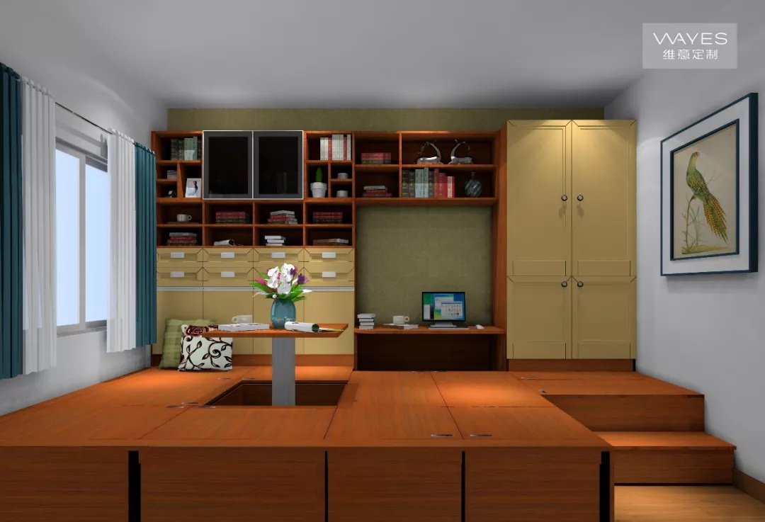 榻榻米升降臺實現一室多功能的特點,滿足了現代大多數小戶型家庭的需求。將升降臺升起,榻榻米就可以做書房、茶室、接待朋友打牌、聊天等,將升降臺降下,就成了兒童的娛樂房,不用擔心會發生磕碰。