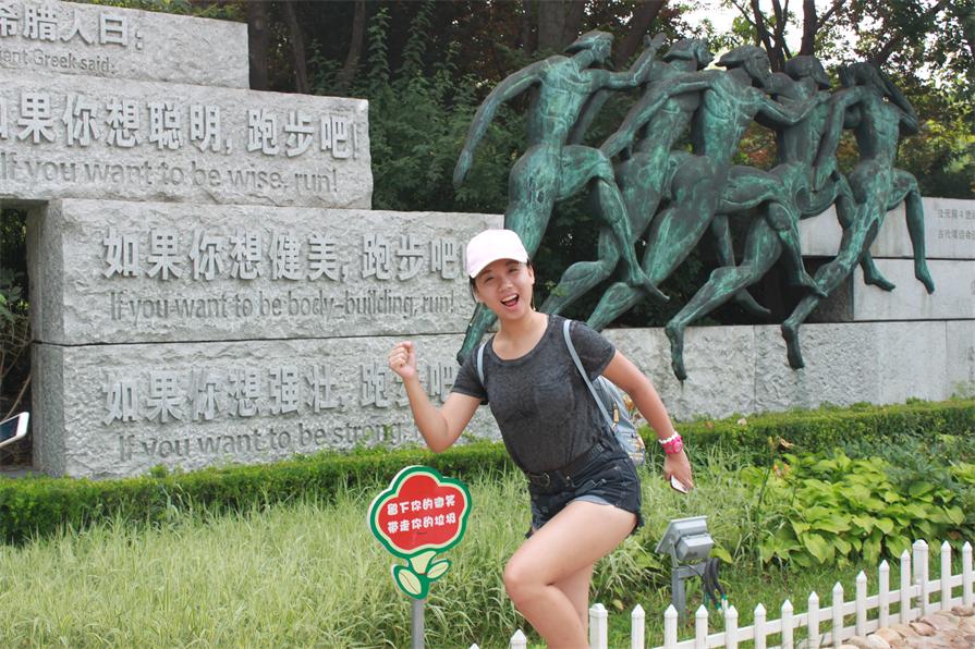 奧林匹克大道公園,這里有著由254塊珍珠黑花崗巖石組成奧林匹克浮雕墻,用五種雕刻藝術手法記錄了奧林匹克運動的起源、發展和盛況,“如果你想聰明/健美/強壯,跑步吧!”。