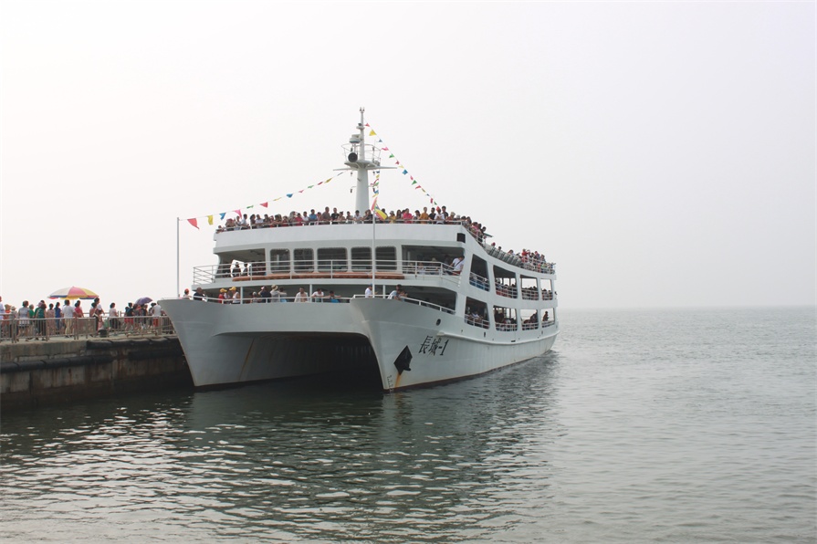 在大太陽下乘坐長城號雙體海上游輪,盡覽渤海風光,看浪花翻滾,觀碣石風采,感受海洋壯闊魅力。