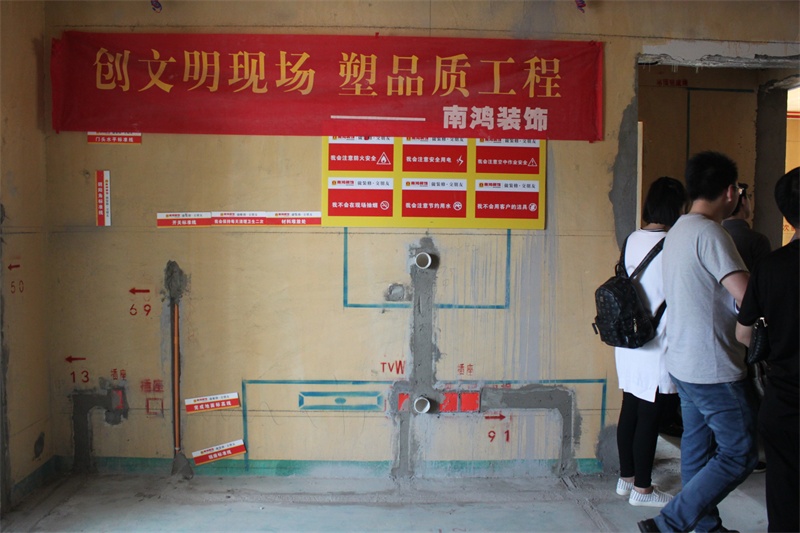 4月16日下午,杭州室外溫度高達31℃,太陽的熱情灼傷了行人的頭發。南鴻裝飾帶著20多組來自德信錢江府的業主坐著大巴來到城西金茂悅參觀南鴻在建工地的水電、泥工、木工、油漆四個環節,聽工程監理的講解,零距離觀察南鴻工地!離開工地后直奔君尚大酒店,聽各位設計師對錢江府的戶型分析講解,看免費設計方案!